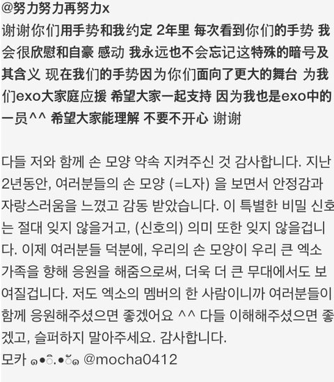 이제 엑소를 더크게 응원해달라고 웨이보에