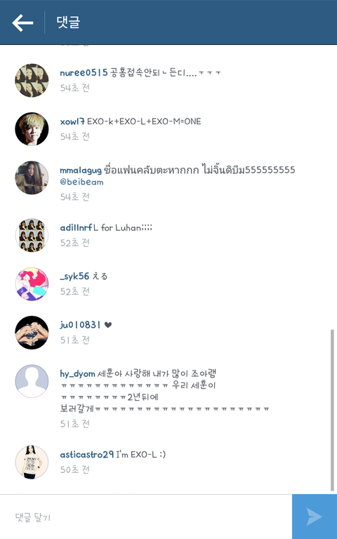 세훈이가 #EXO-L 이라고 올렸잖아 근데 댓글보면 L은 루한꺼라고..ㅋㅋㅋㅋ