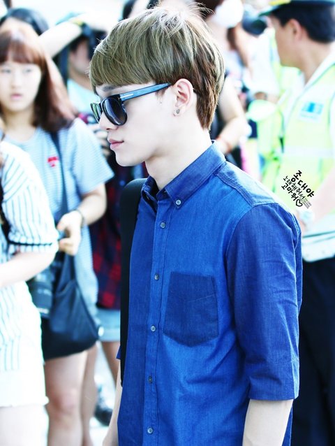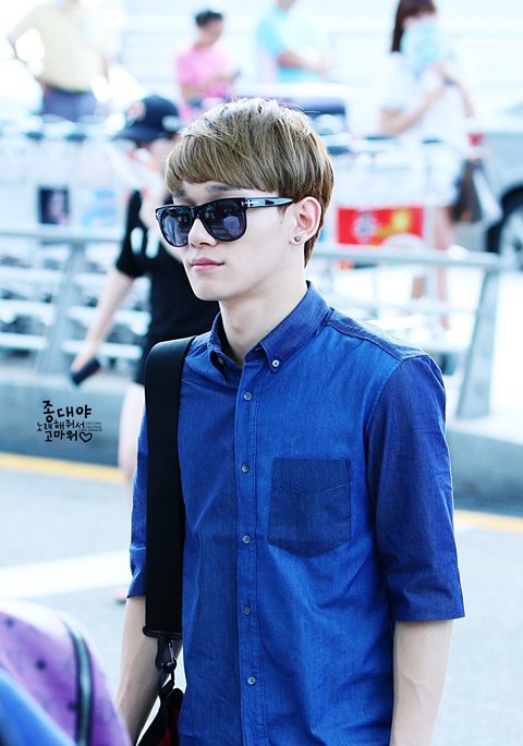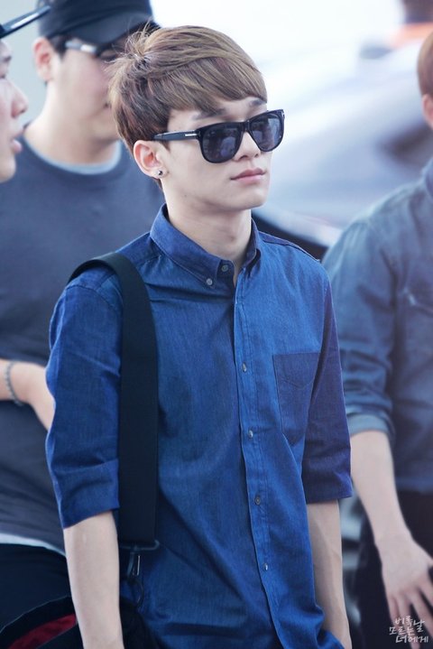 엑쏘(exo) 첸 의 공항패션 !! 양옆이 다른 데님셔츠는 플랙진 셔츠라고 합니다