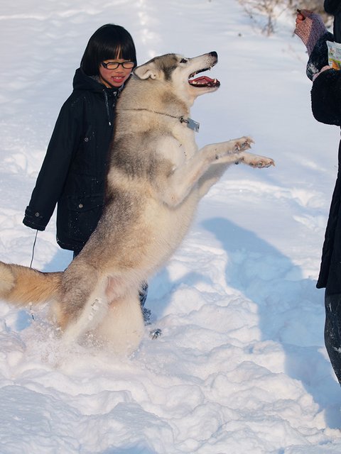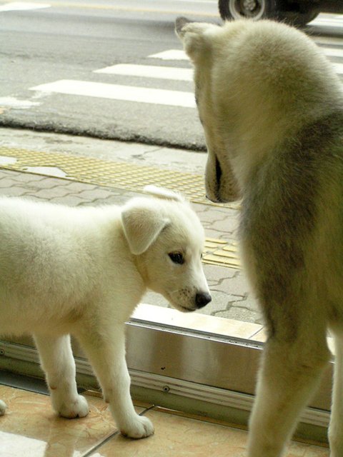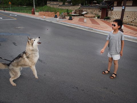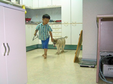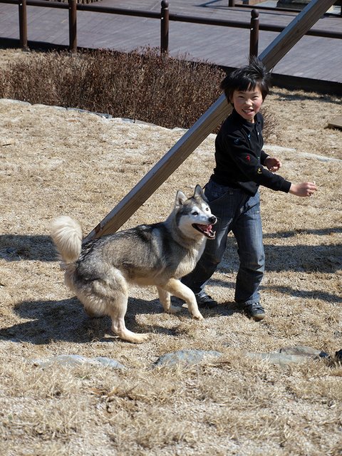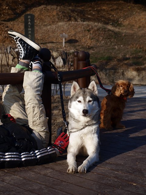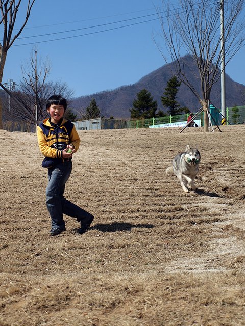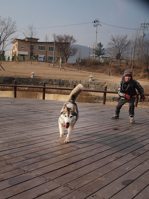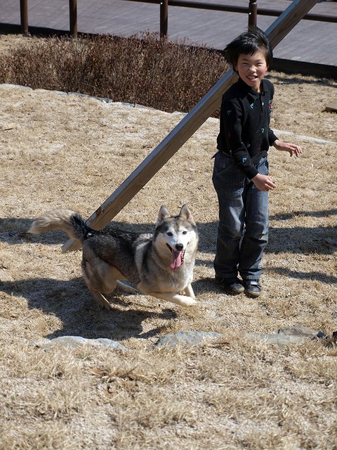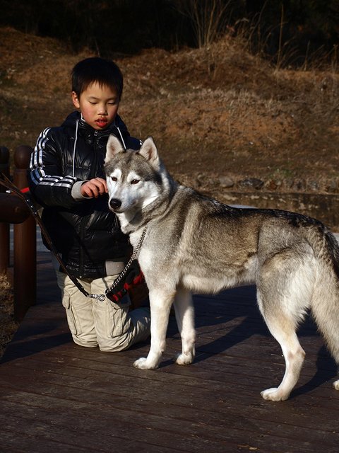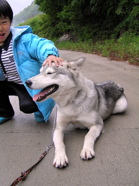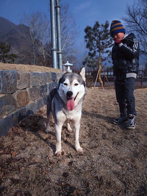 당행한 것은 허스키는 대체로, 모든 동물과 모든 사람과 잘 지내는 성품을 지녔다는 것이었습니다. 하지만 이것도 개체에 따라 다르더군요. 매우 사나운 녀석도 있고 혹은 너무 과한 녀석도 있죠. 일예로 쥔보다는 낯선 사람을 더 반기는... 뭐 그런 경우도 있구요.