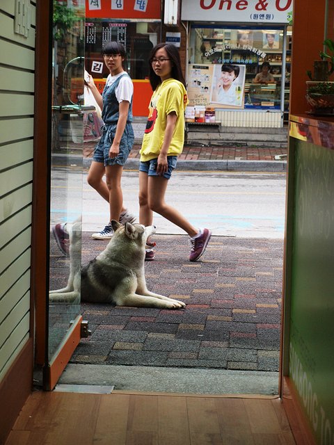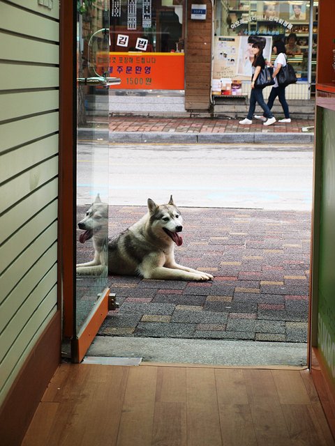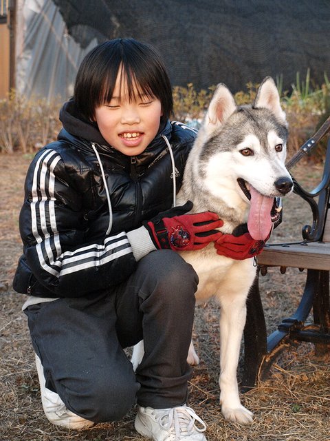 적응을 하는 것은 빨라서 보통의 허스키 마냥 그런 성격인 줄 알았는데, 주인과 가족과 타인의 구분이 명확했습니다.(이런 점에서는 약간 원맨독 스러웠지요.) 그냥 타인과 주인만 구별하는 것이 아니고 타인과 손님도 구별하더군요. 오직 타인 그리고 쥔밖에 구별할 줄 몰랐던 강군이와 구별되는 영특함이었습니다. 낯선 사람 아무에게나 꼬리를 흔들어대는 일 따위 하지 않았습니다.