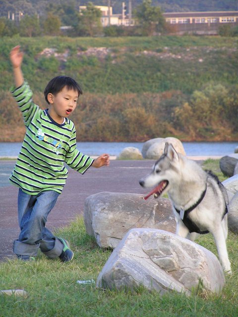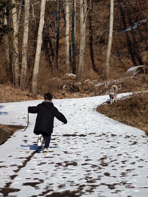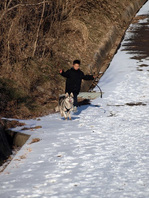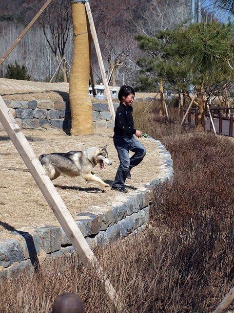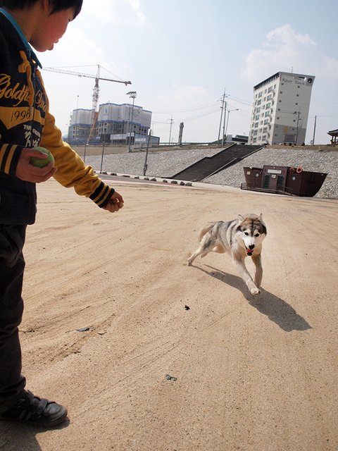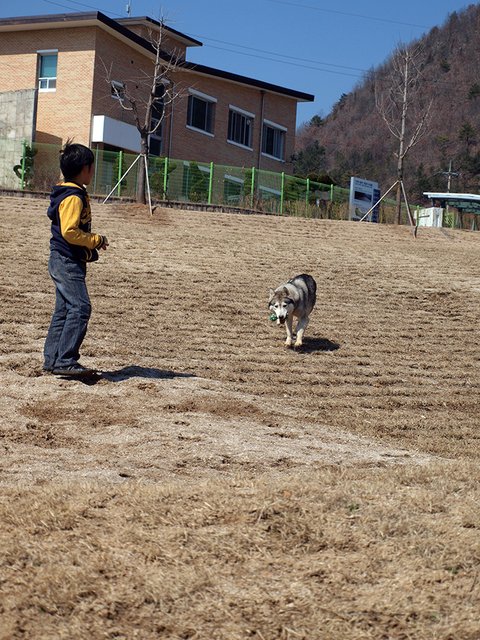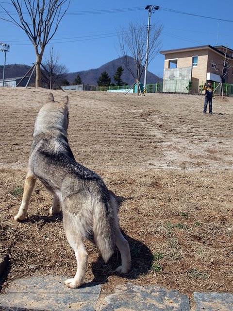 들이와 강이를 데리고 다닐 때는 정말 아무런 간섭(?)없이 산책을 하지만, 욘석을 데리고 다니면 확! 달라집니다. 어른 아이 남녀 구분 없이 엄청난 관심과 간섭을 시작하지요. 대체로 나이 많은 남성분들과 꼬마나 학생들이 엄청 좋아합니다. 재미있는 것이... 개를 무서워하시는 여성분들 마져도, 녀석에게 호기심을 보이시더군요.(남성분들이 여성들 꼬시려고 멋진 멍이를 키운다는 이야기가 있는데... 정말 효과 있다는 생각이....) 정말 의아스러운 일이지만, 들이를 보고는 어머나 개! 나 개 무서함! 하면서 멀찌기 돌아가시는 분들도.... 솔이를 보면 두려움 반 호기심 반으로 조금 덜 멀찍하게 돌아서 가시더군요. 심지어 어떤 분은 멀리서 멈춰서서 저희에게 늑대에요?? 제가 개를 무서워하는데 개가 참 멋있네요. 이러신 경우도 겪었지요. 결론 적으로 모든 사람들은 일단 외모로 개를 평가한다. 외모는 호감도를 상승시킨다. 뭐 그런 엉터리 결론을 내려봅니다.