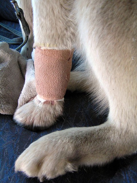산책을 나갔다가 어이 없이 다리를 찢어먹어서...