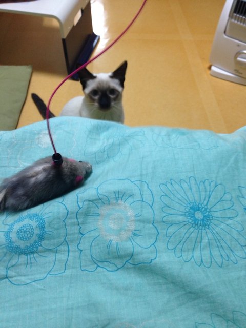 오늘도 쿤이에게 쥐돌이 낚시를 합니다.