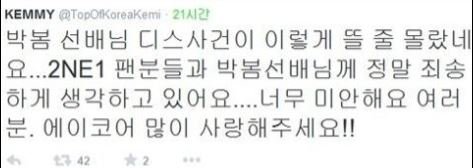 8월5일 오늘 케미의 이름으로 박봄에게 사과하는 글을 올렸지만,
