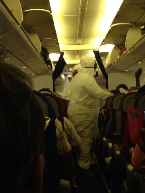 승무원아닌거같은데? 짐놓는칸 문이 다열려있잖아 아직 이륙전인데 그냥 검사반이 들어온거아냐?