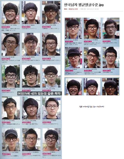 일본 싸이트에 올라온 한국 남자 얼굴 평균