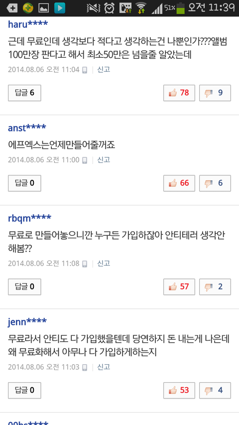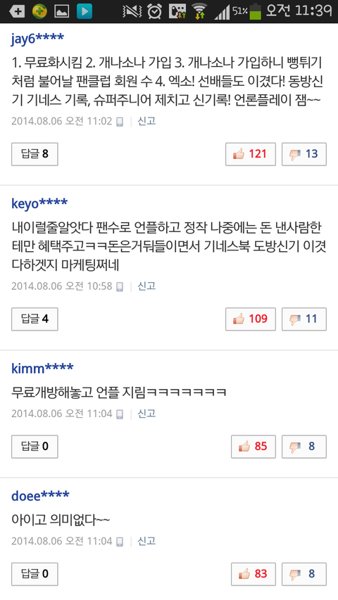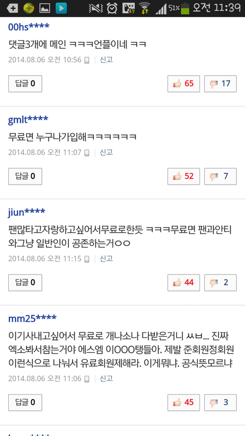 다음에서 팬까페가입할때 지들은 돈냄?