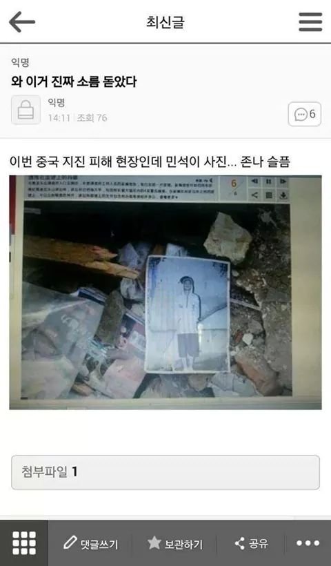 중국 지진피해현장에 민석이사진...