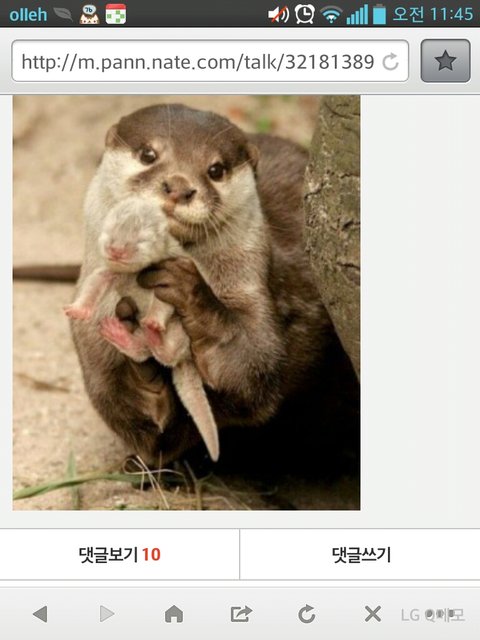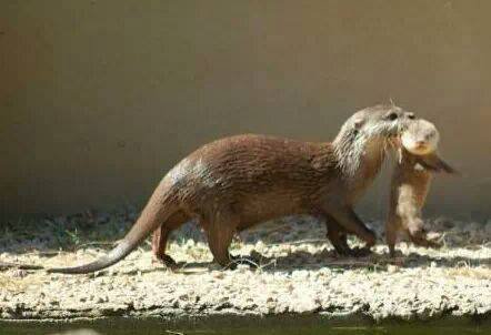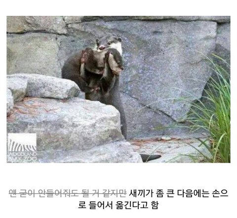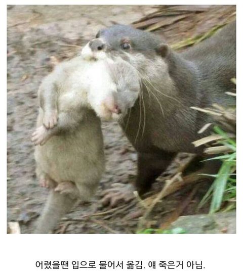 우와. 손으로 새끼 들어 옮기면 어미수달은 두발로 사람처럼 걷는다는건가? 신기. . .