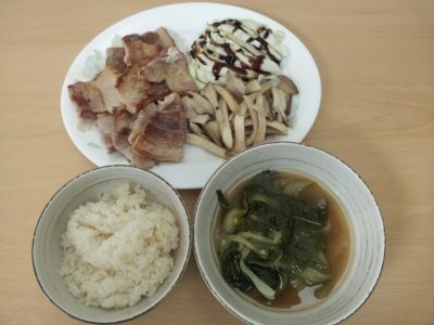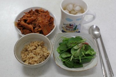 나름 건강을 생각한다고 풀이랑 현미밥이랑 김치제육볶음(인지 김치볶음인지 모르겠네요).