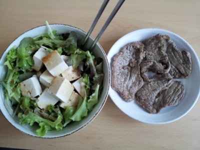 연두부샐러드와 스테이크.