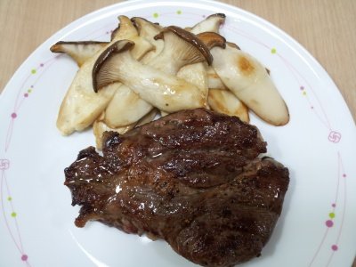 스테이크와 새송이버섯볶음.