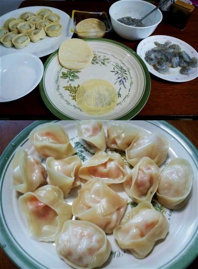 새우완탕이 너무 먹고 싶어 만들어 보았던 새우만두.
