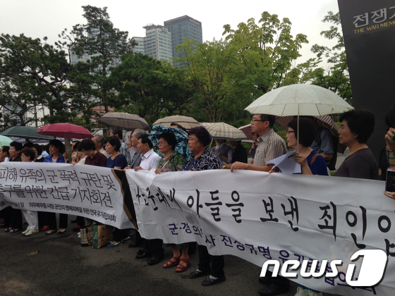 의무복무중 사망 군인의 명예회복을 위한 전국 유가족 협의회 회원 40여명이 5일 서울 용산구 국방부 청사 앞에서 기자회견을 열고 한민구 국방장관에 면담을 요청했다. © News1"우리는 차라리 윤 일병이 부럽다. 적어도 윤 일병은 부대에서 무슨 일을 겪었고 왜 죽게 되었는지는 밝혀지지 않았나"
