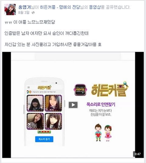한번 다 같이 재밌게 ㄱㄱ 해 봅시다!! 구글플레이스토어에서 히든커플 다운 ㄱㄱ