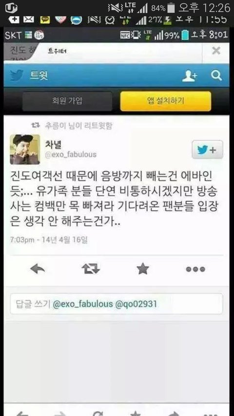 트위터로 엑소 못나왔다고 불평질 다량 리트윗