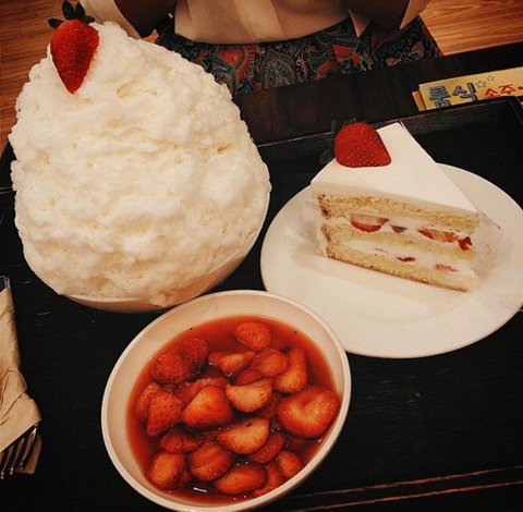 여기 빙수 팔천원인데 존맛 모양도 이쁨 여기 생크림딸기케잌도 유명한데 맛있엉