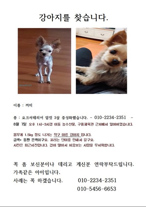 우리 꺼미좀 꼭좀 찾아주세요(사례는 꼭 하겠습니다)
