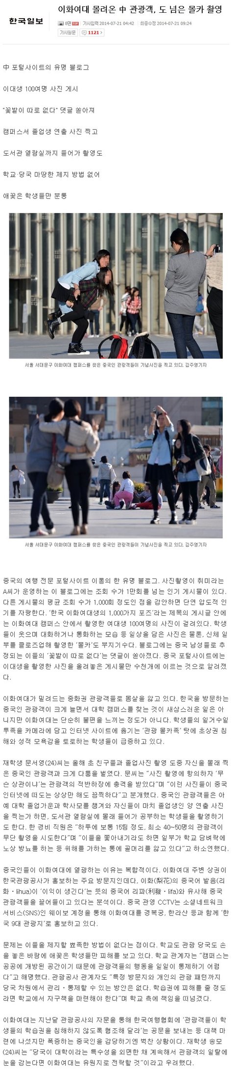 이화여대 몰카찍는 중국인 관광객