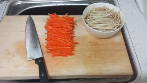 먼저 당근과 우엉을 채 썰어줍니다