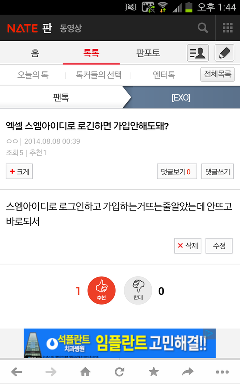 어제글올렷는데 댓글이없어서ㅠㅠ저래도 되는거지? 엘카드누르니깐 뜨던데