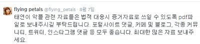 태연 팬페이지중 가장큰 팬페이지에서 태연 명예훼손 인신공격한사람 신고한데.