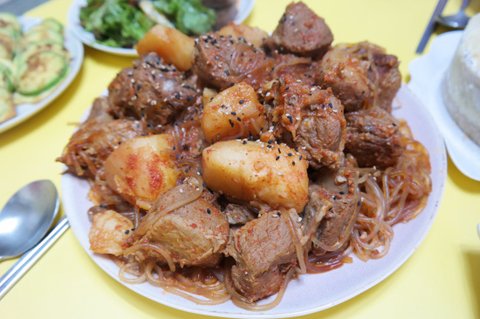 메인 요린데.. 다른 요리가 늦게 완성돼서 당면이 다 불어터져버렸...ㅠㅠ