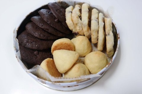 쿠키통에 넣어서 선물했어요. 아래 영문유산지 깔아주면 정말 파는 것 같아요.!