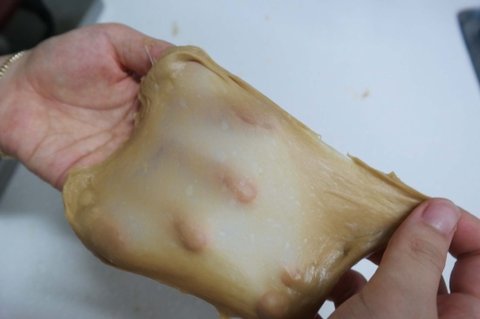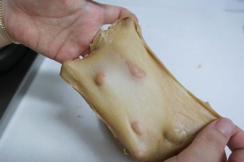 반대편이 잘 비칠수록, 투명도가 일정할수록 더 잘 된 반죽이에요 :D