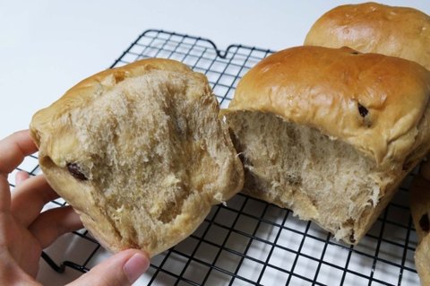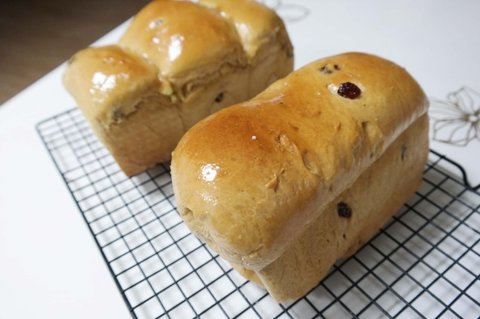 발효빵은 나오자마자 우유물이나 녹인 버터를 발라주면 윗면이 촉촉+부들부들 해져요.