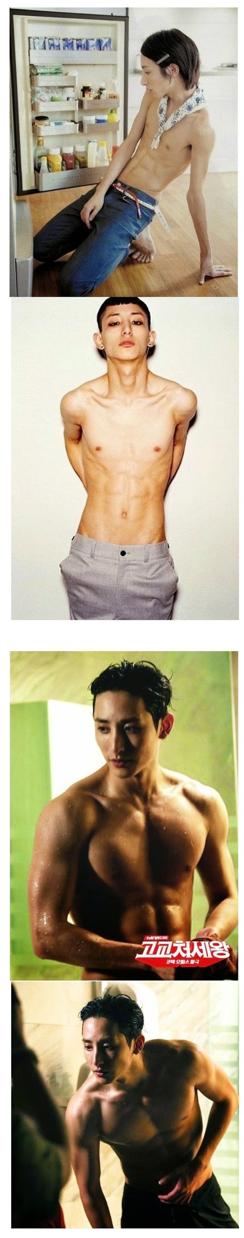 저게 마른 근육이에요.. 그리고 예전엔 모델이 주업이엇기 때문에 삐쩍 꼴은 몸매로 지냇던거고 이젠 배우로 전향 햇으니 몸을 찌우는 거겟죠