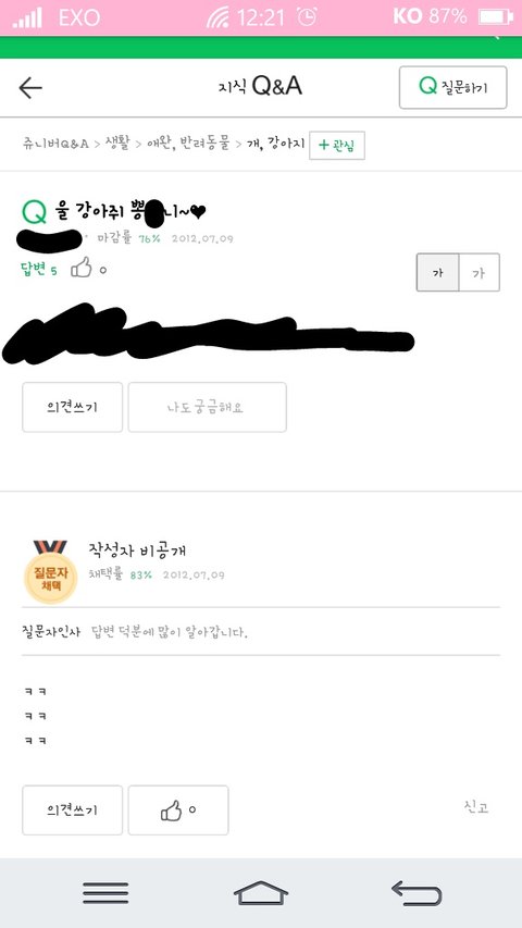 강아지이름 은한자리가렸어..ㅋ답변도 거지같은걸..