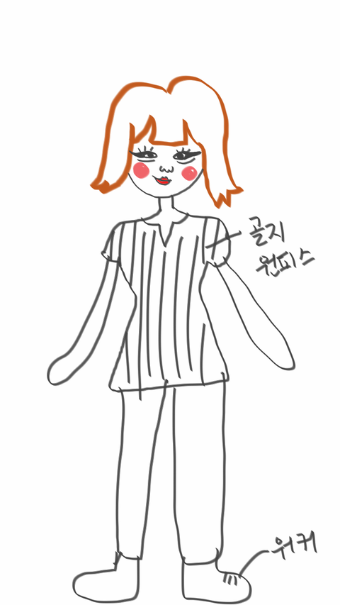 삼지창, 관자놀이 아이라인, 애교살, 렌즈로인한 개눈, 쥐잡아먹은 주둥이, 쫙 달라붙는 회색 골지티ㅋㅋ딱봐도 싸구려 5900원짜리ㅋㅋㅋ 워커, 또는 웨지힐ㅋㅋㅋ