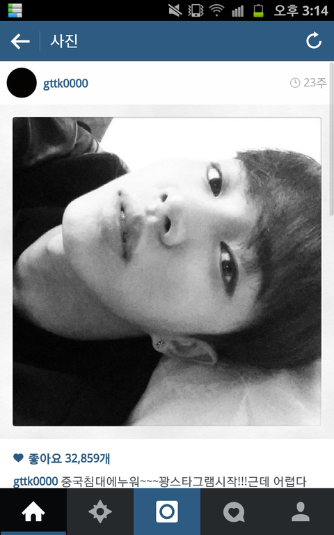 이기광 인스타를 보면 사진을 거의아래에서 찍음