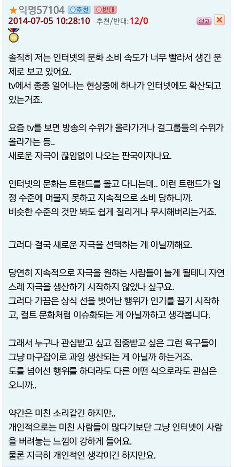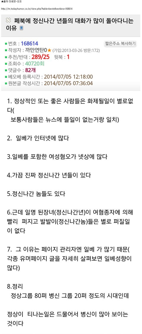 저거 오유인가 그거 아님? 벌레들이 맨날 오유도 똑같음 ㅇㅇ 이러면서 물귀신으로 끌어댕기더만 저기 사람들이 훨씬 정상적인 말투쓰고 똑바로 생각하네 뭐;;