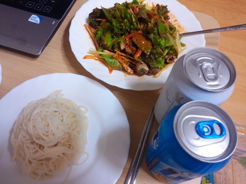요거는 골뱅이무침! 쌈채소랑 초장 골뱅이만 있으면 쉽게 만들 수 있어요 ㅎ 골뱅이 국물이 포인트랍니다 거기에 맥주한캔이면 캬!