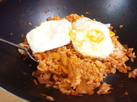 요고는 김치볶음밥이에요 간단히 만들어먹었는데 정말 꿀맛이었답니다 계란 두개는 센스!!!