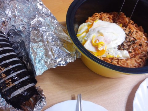 요거는 모두 좋아하는 불닭볶음면! 매운맛 잡아주려고 김밥이랑 같이먹었는데 소용없었답니다 ㅜ 아또먹고싶당..