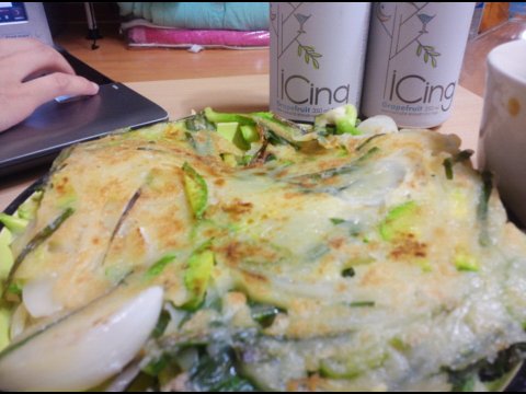 비가오길래 해먹었던 파전 ㅋ 파전에 아이씽먹으면서 영화볼때 크 즐거움이란 ㅜ