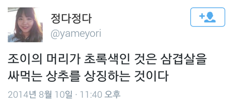 자까님이 빠진 초록머리 조이짤 투척