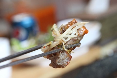 고기유만의 특이한점은 다른고기집과는 차별화된  숙주나물을 함께 먹을 수 있다는 장점이 있어요~ 이렇게 쌈야채나 반찬과 함께 같이 나오는 숙주는 푸짐하기도하고 영양만점에 식감이 좋아서 인기가 많았습니다.ㅋㅋㅋ