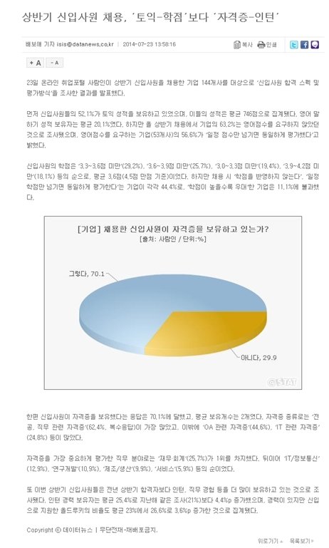 저는 자격증 취득을 중심으로 준비중인 단계였어요. MOS와 한국어능력시험, 그리고 운전면허증(?) 정도인데아래 기사를 보고 자격증의 중요성을 더더욱 실감하게 되더라고요?