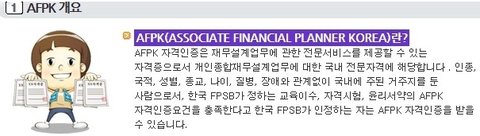 위에 보시는 것처럼 AFPK(ASSOCIATE FINANCIAL PLANNER KOREA)는 재무관리를 해주는 금융자격증 중 하나에요!