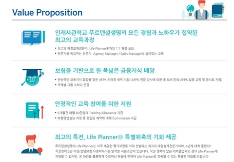 푸르덴셜 금융전문가과정은 재정설계전문가인라이프플래너와 1:1 현장실습으로 진행되구요,6개월간 매월 80만원의 교육비도지급받을 수 있다고 하네요!