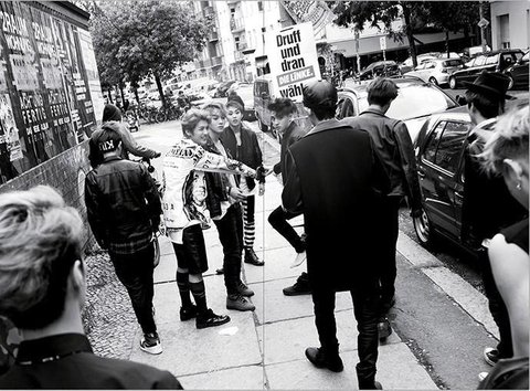 다 긁어와봤어~ㅋㅋ 마지막사진에 종인이 앞에 쭈그려앉아있는 복슬머리 볶은머리 우리한이 맞져??