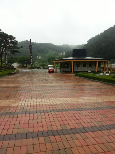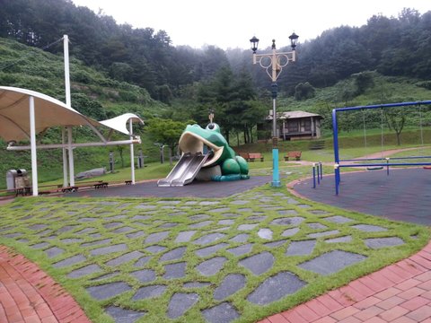 직지사 가는 길에 공원! 비만 안왔더라면 저 개구리 미끄럼틀 타봤을텐데 ㅋㅋㅋㅋ 저기 저 뒤에 오두막집은 너무 으스스할거같아서 멀찌감치 구경만함..ㅋㅋㅋㅋㅋ