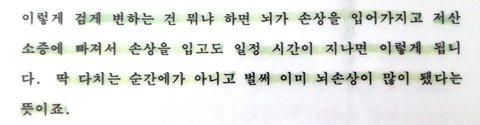 떨어지기전 이미 잠시동안 숨이멎어 뇌는 어느정도 죽어있었다