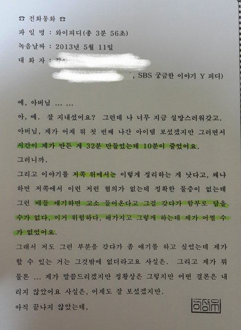 유가족에겐 통보식으로 얘기했다