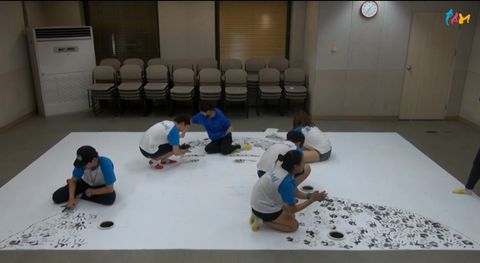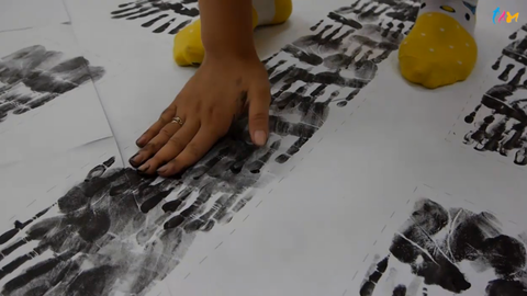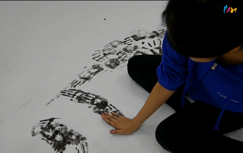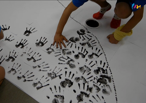 우린 먼저 찍은 손도장이 마르기를 기다리고